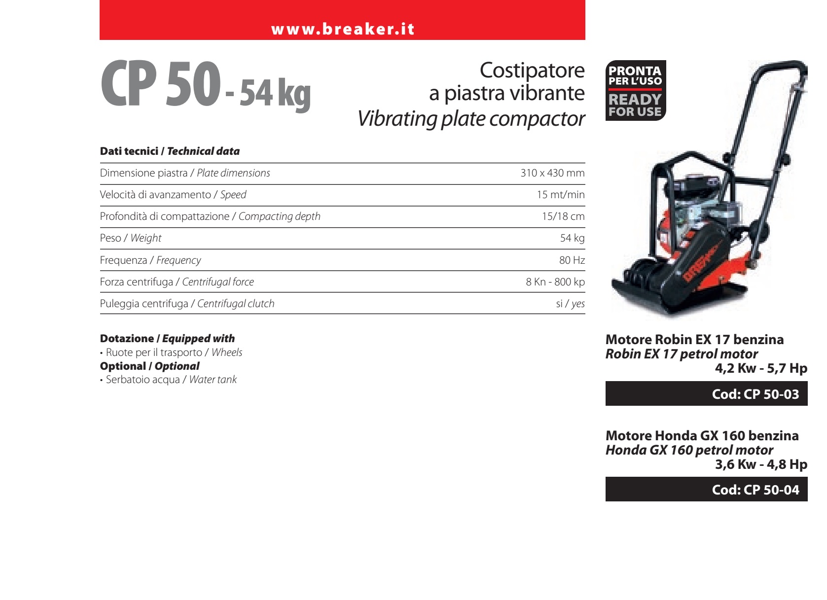 Breaker Piastra Vibrante Cp 50-a 310 X 430 (scegli Il Motore)