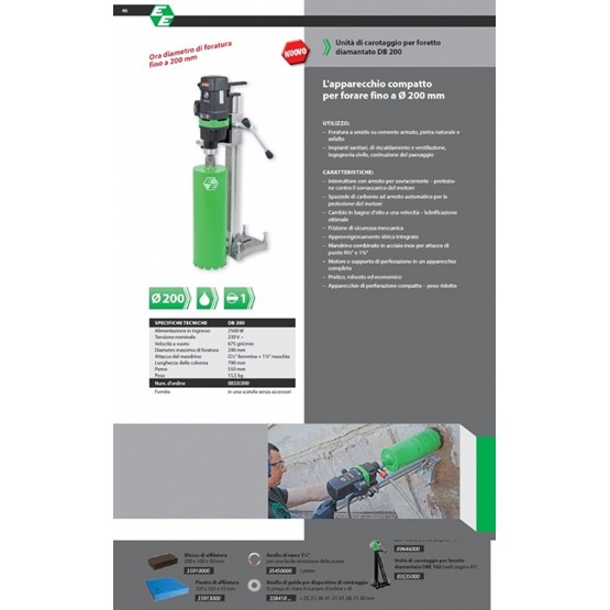 Eibenstock Db 201 Il Carotatore Da 2500 W Ad Acqua Idonea Su Cemento Armato, Pietra E Asfalto, Per Fori Max 200 Mm