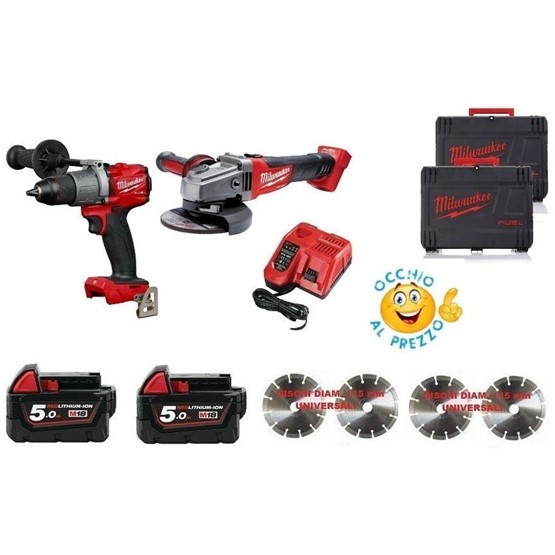 Combo Kits Milwaukee Brushless M18 Fpd2-502x + M 18 Fhsag125 Smerigliatrice