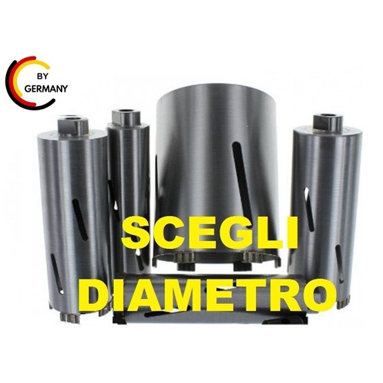 corona diamantata a secco diam. 32 x 180 mm fresa carotatriceCaratteristiche: Foretto diamantato a secco per carotatrici con saldatura laser Lunghezza corona 180mm. attacco M16 applicazioni cemento leggermente armato, e laterizi. Segmenti scanalati per lo scarico dei materiali