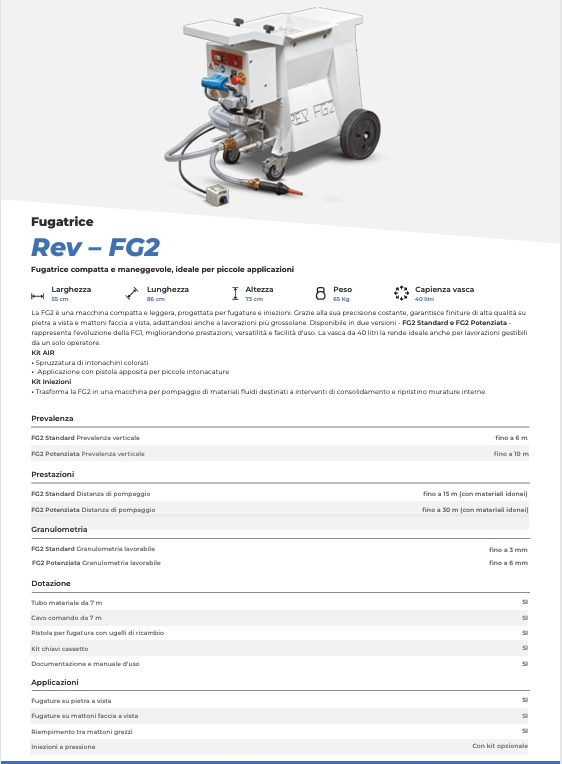 caratteristich: Fugatrice stuccatrice revelin FG2 potenziata