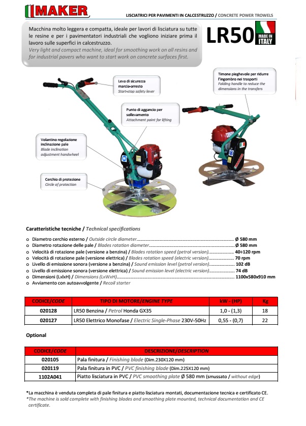Elicottero Ø 580 Per Pavimenti Maker Lr 50 Con Motore Honda Completo Di Discoin Pvc E Pale Finitura