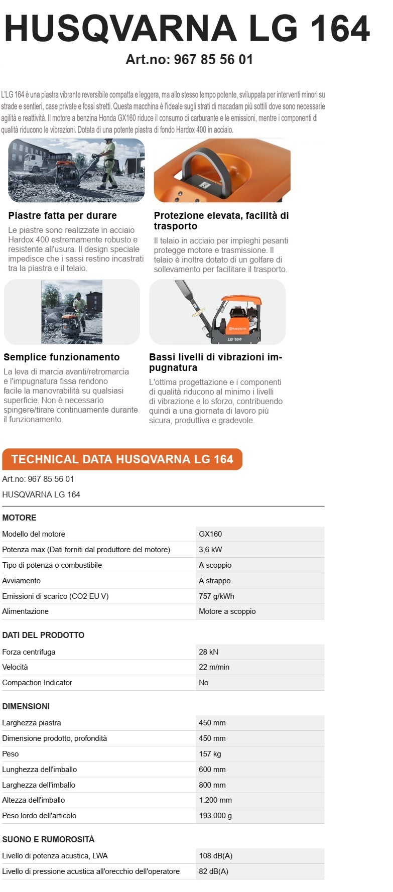 Piastra Vibrante Husqvarna Lg 164 Reversibile 967855601