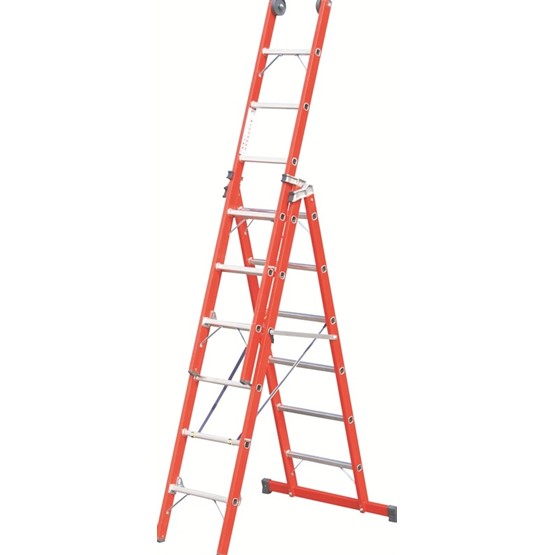 Una scala versatile che si adatta velocemente alle diverse posizioni di lavoro, ideale per lavorare con praticità in qualsiasi situazione di impiego garantendo sempre stabilità e sicurezza. Con i montanti di ogni i tronco in vetroresina la scala garantisce un isolamento elettrico in tutte le condizioni d'uso.