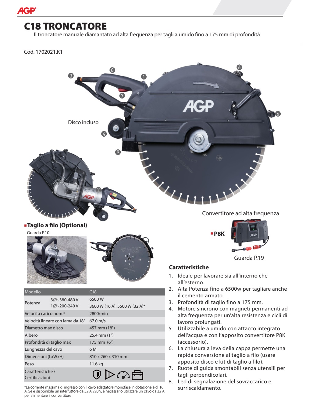 Sega C18 A Disco Rurmec Agp Troncatrice Elettrica Alta Frequenza Profondità Di Taglio Mm 175 --