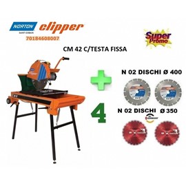 Effettua tagli con avanzamento del carrello oppure basculando la testa di taglio. E’ progettata per lavorare con dischi Ø350 mm e, a seconda della versione, tracciatore laser e kit ruote forniti di serie o optionals.
