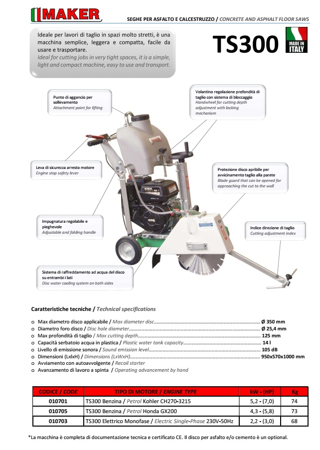 N. 01 TS 300 C/DISCO Ø 350 CEMENTO/ASFALTO E MOTORE HONDA