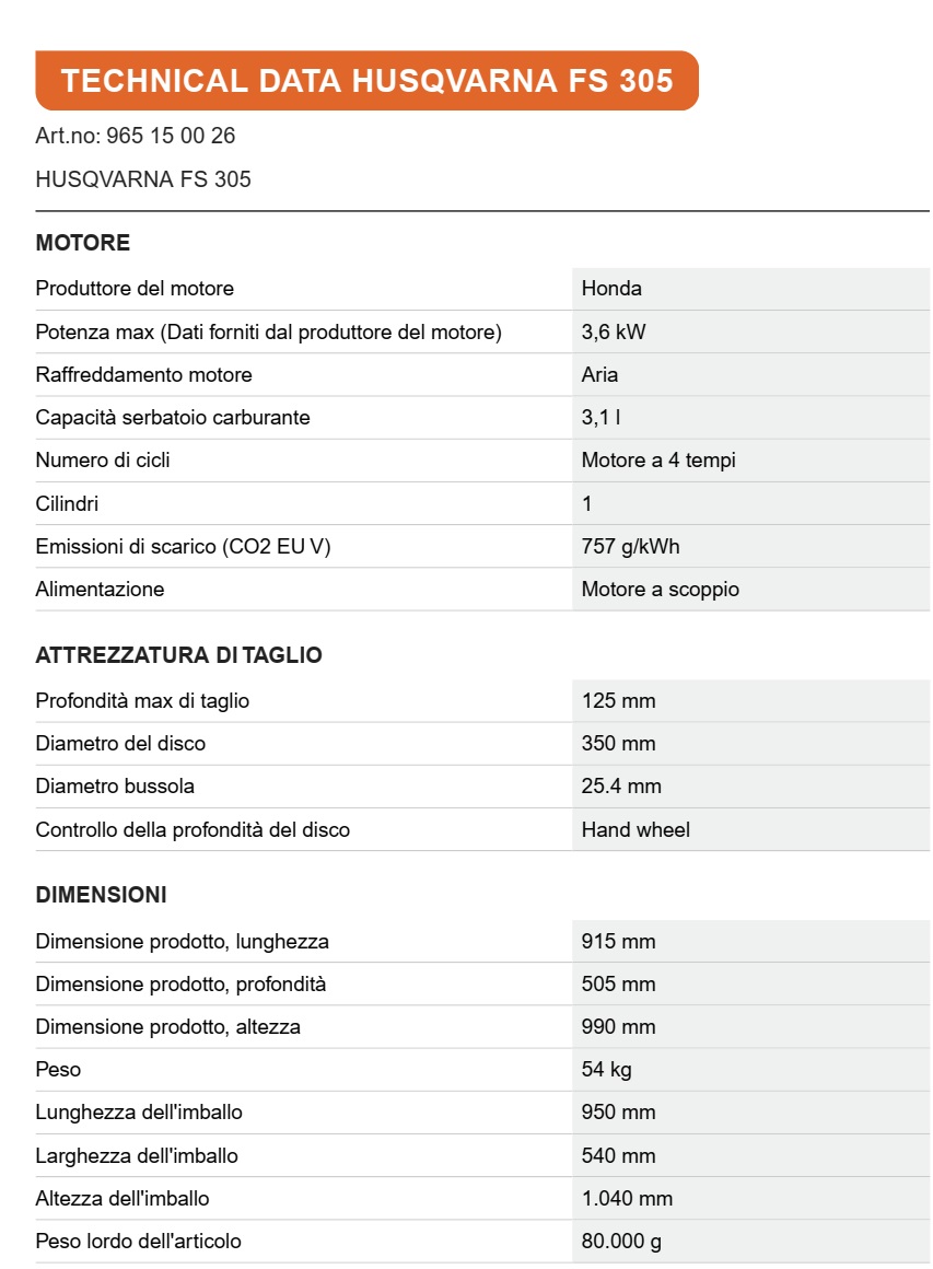 Husqvarna Fs 305 965150026 Tagliasfalto Fs 305 Segatrice Taglia Pavimenti