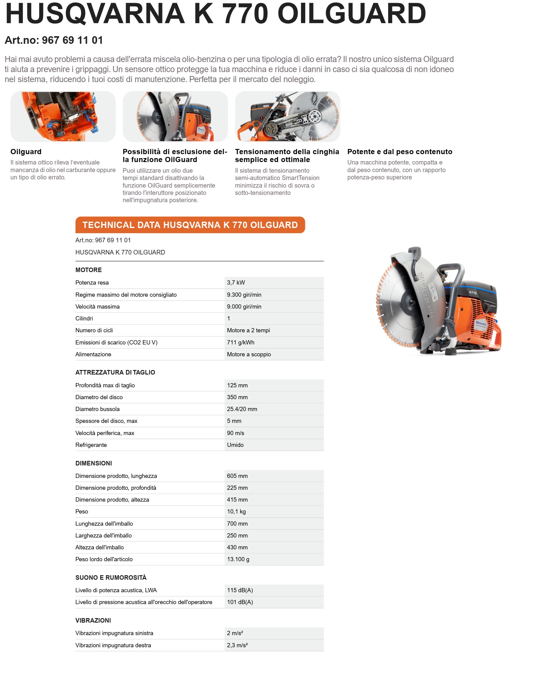 husqvarna K770 14 mototroncatrice OIL GUARD il sistema che ti aiuta a prevenire i grippaggi. taglio cemento con 5 dischi ART 967691101--
