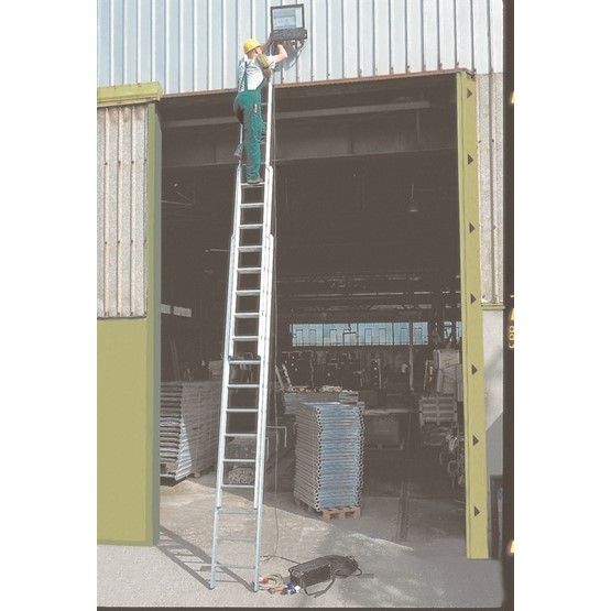 - Una scala d’appoggio con caratteristiche base indicata per raggiungere altezze intermedie risulta essere la più leggera nella sua categoria. Lo sfilo in tre tronchi rispetto allo sfilo in due tronchi, consente di raggiungere altezze maggiori, mantenendo invariato l’ingombro nel trasporto.