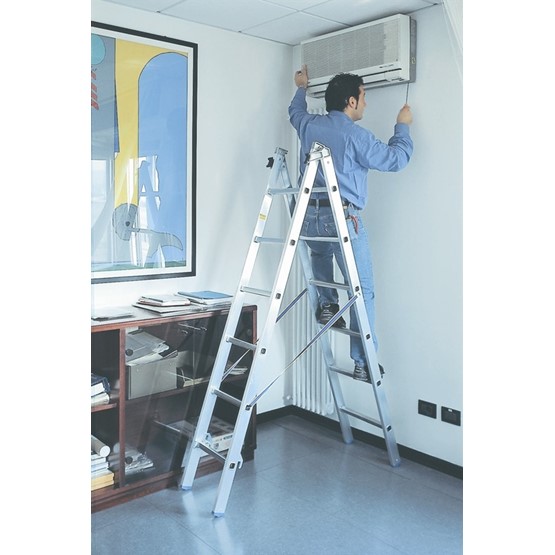 Scala In Alluminio Multiuso A Sfilo E Cavalletto In Due Tronchi Per Interni Ed Esterni Multiuso