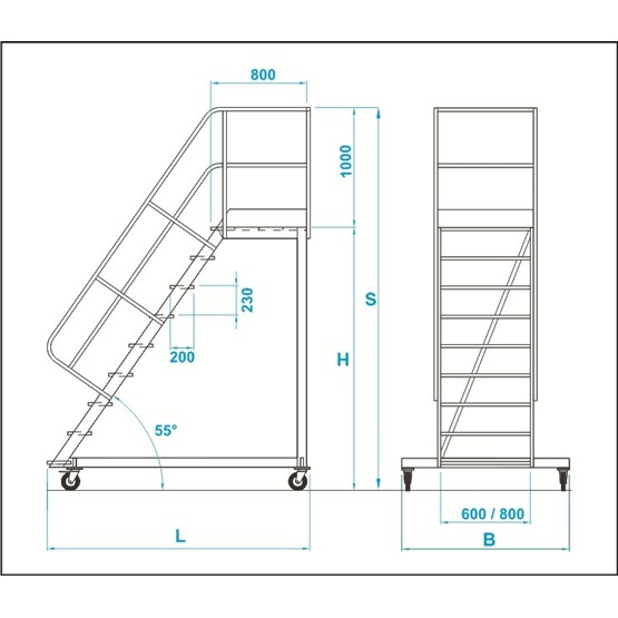 - Su richiesta: la scala può essere fornita con ruote auto-disattivanti