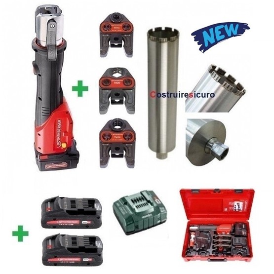 Pressatrice A Batteria Romax 4000 Rothenbergher Con 1 Batteria E Carica Batteria + Corona Diamantata A Umido D.82x420 1 1/4