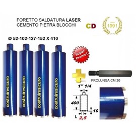 Corona Diamantata D. 52 X 410 A Secco Fresa Carotatrice Attacco 1-1/4 (scegli Diametro)