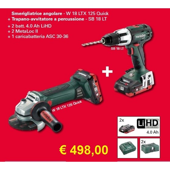 Metabo Sb 18 Lt Trapano + Smerigliatrice Angolare Wb 18 Ltx Bl 125 Quick