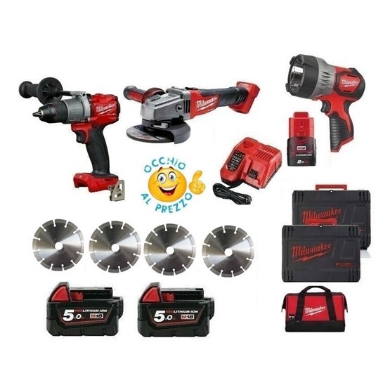 milwaukee M18 FPD2-502X + M18 CAG 115-0 fuel + torcia