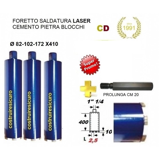 Kit Foretti Diamantati Per Carotatrice 82-102-172 X 410 Saldatura Laser Per Cemento Mattone Arenaria Cacestruzzo Armato B