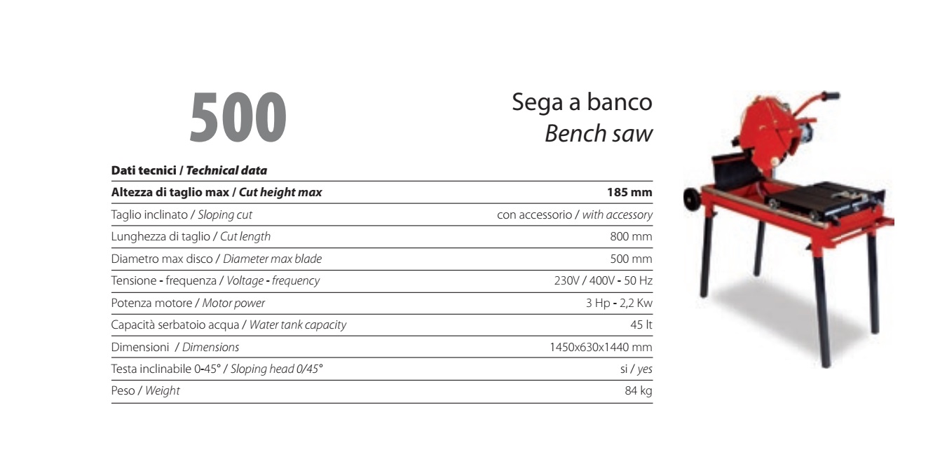 Sega A Banco Power 500 Taglio Blocchi Laterizi Monofase Comer-breaker